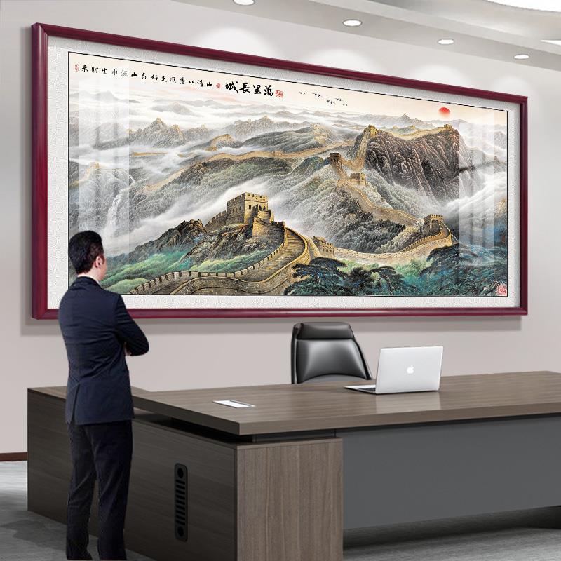 万里长城靠山图大会堂国画高级感客厅背景墙壁山水挂画办公室装饰