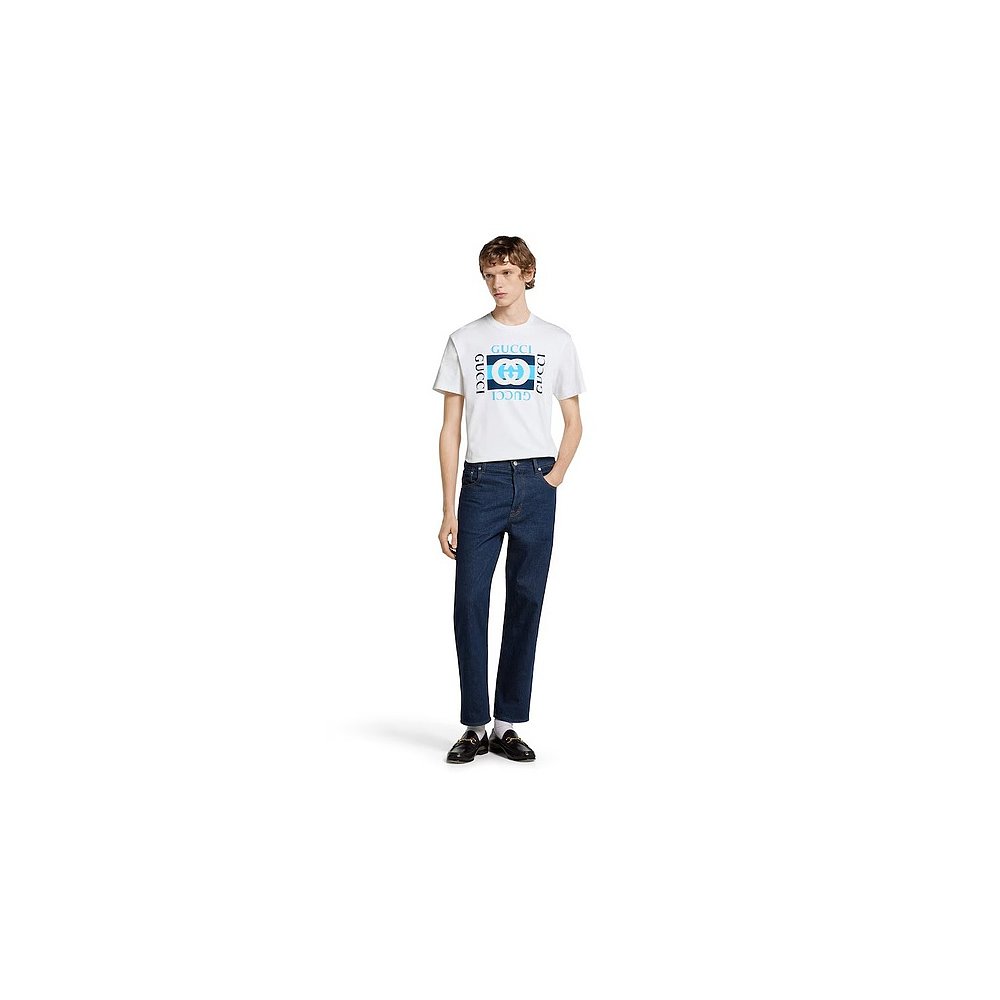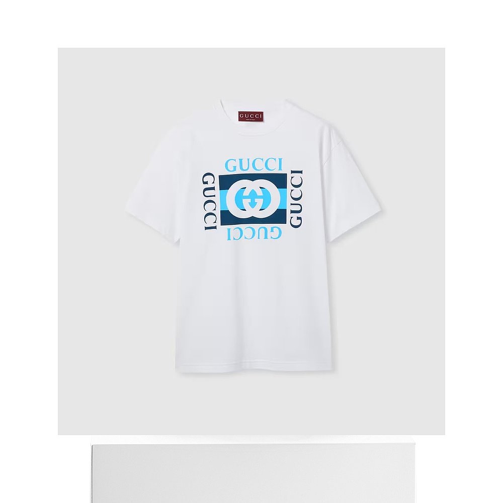 自营欧洲直邮Gucci/古驰 男士白色棉双G条纹印花短袖T恤