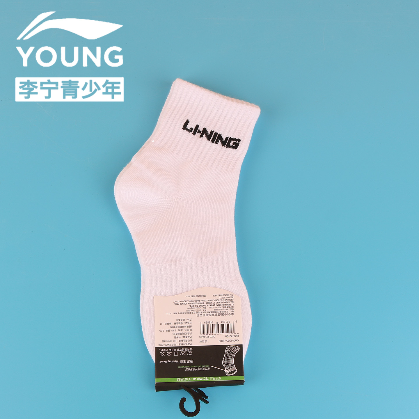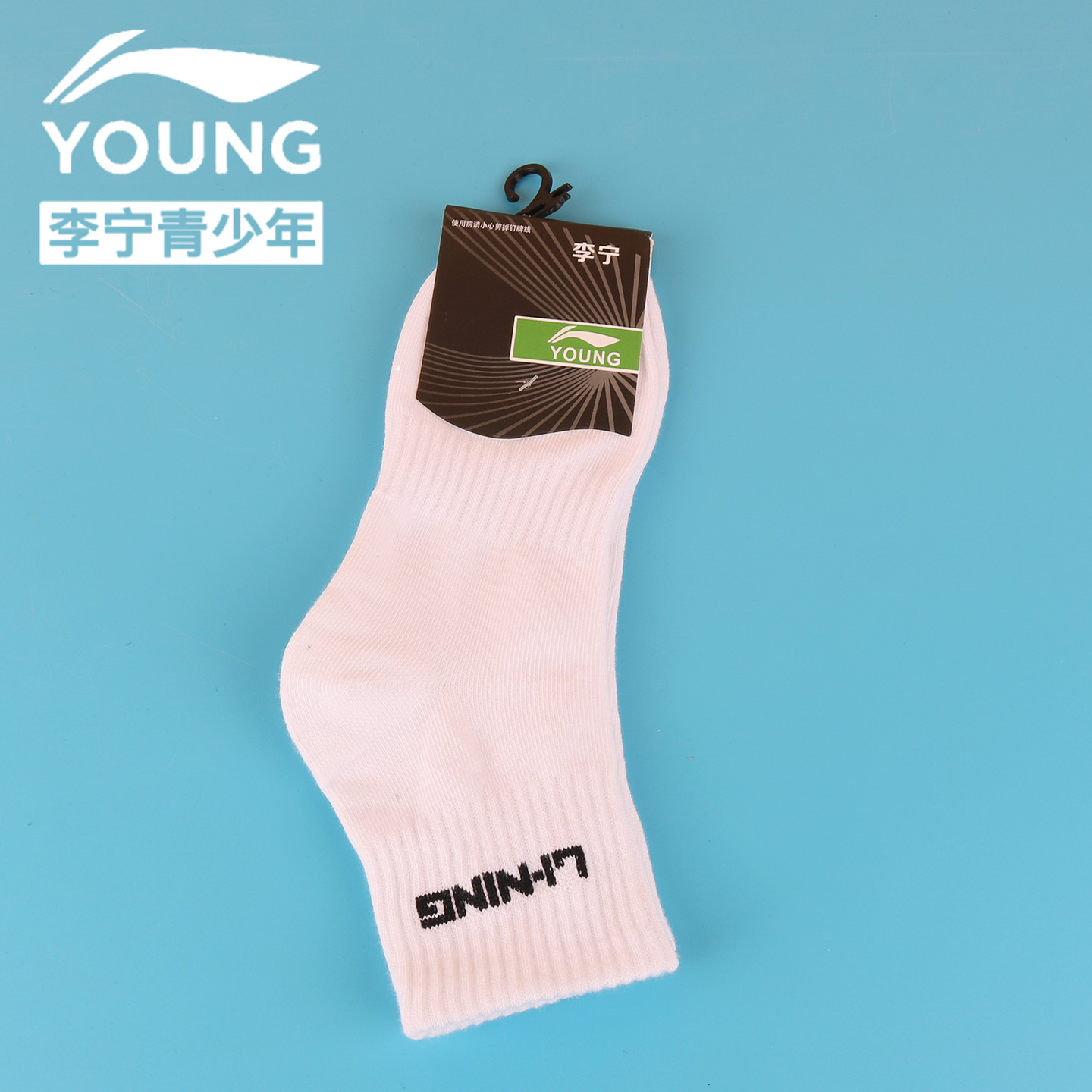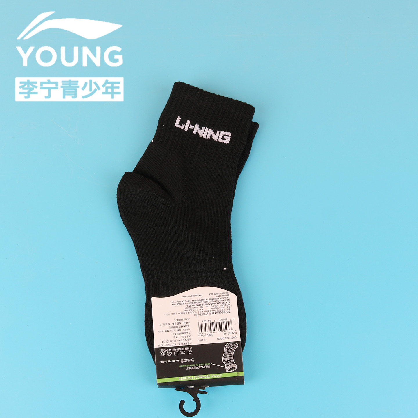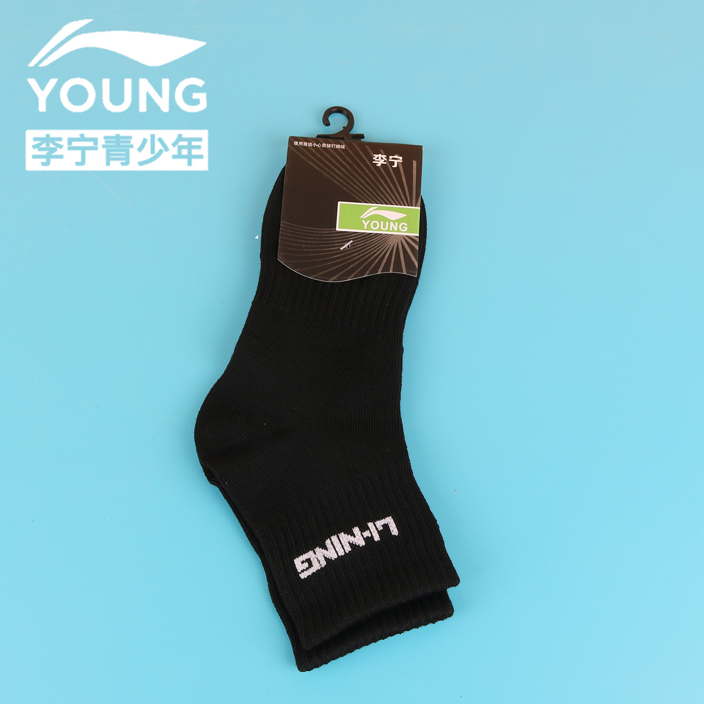 李宁儿童袜子男女款青少年运动袜黑白中性中筒跑步四季款棉质袜子