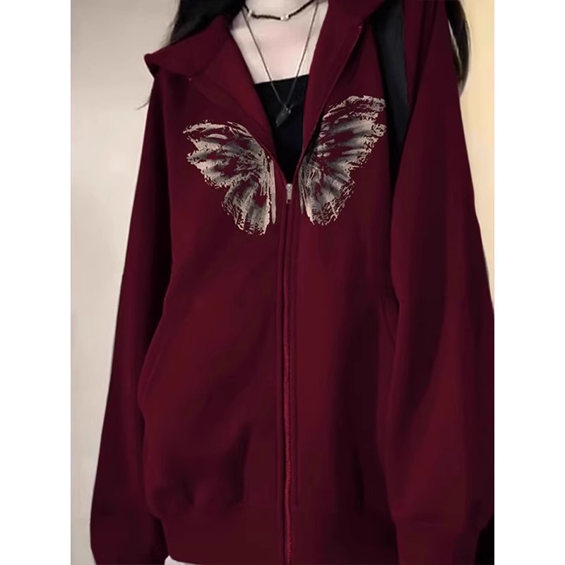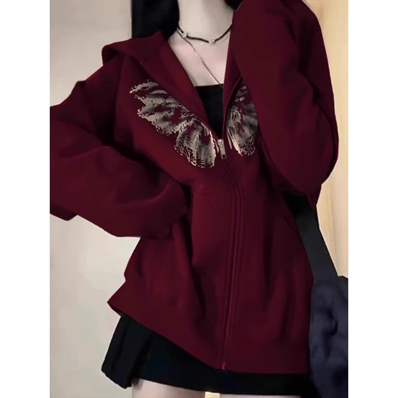大码300斤美式复古连帽卫衣女秋季新款潮牌外套独特印花宽松上衣