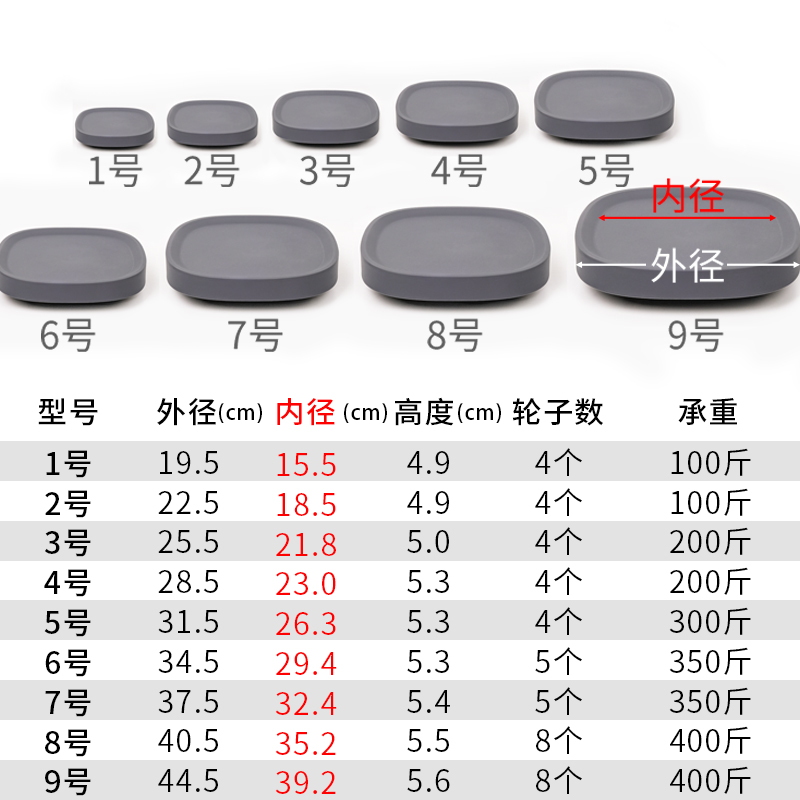 花盆托盘带轮底座滚轮接水盘塑料花盘底托盘可移动隐形滑轮花盆垫