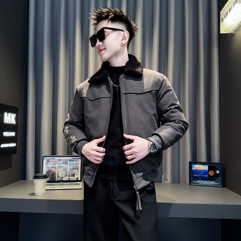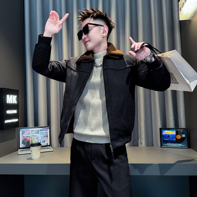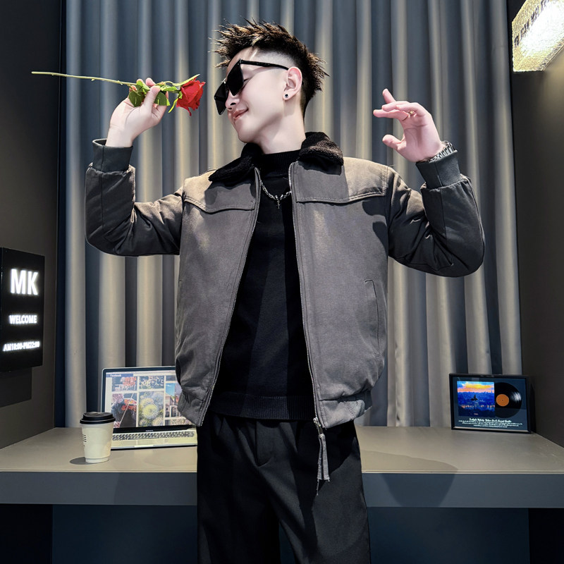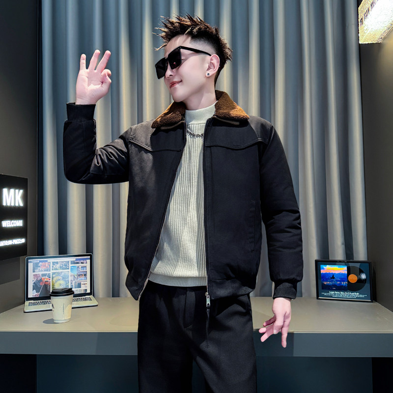 冬装痞帅风棉服男装休闲流行撞色