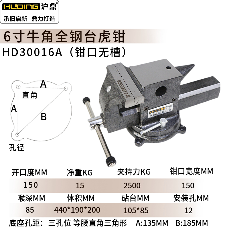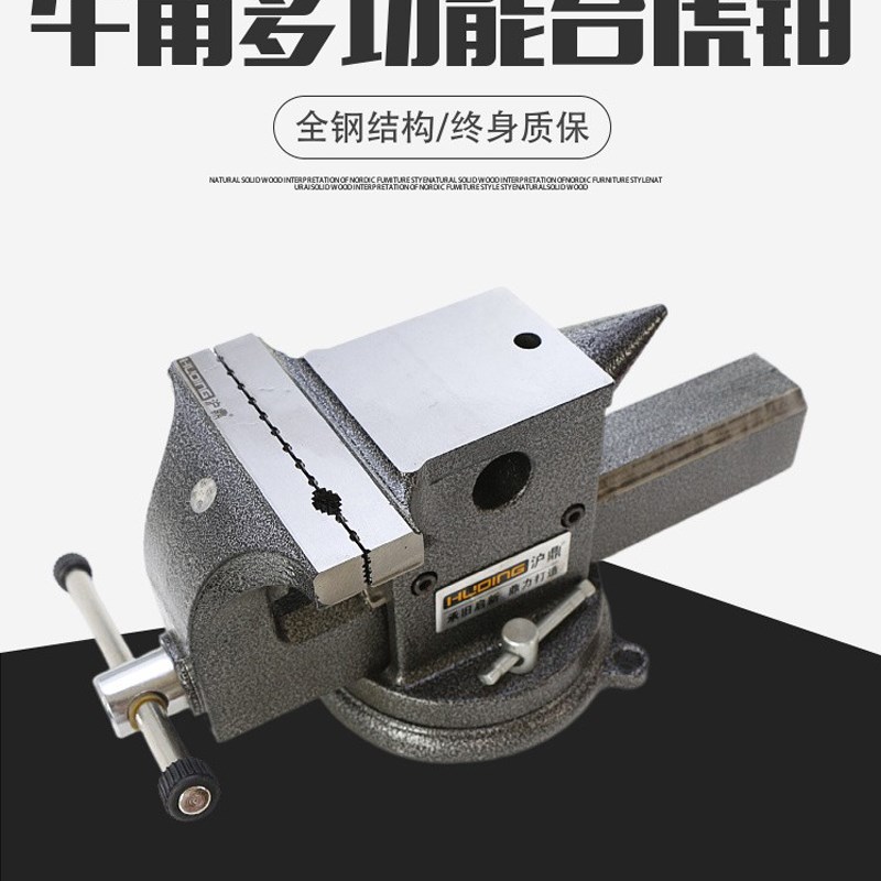 沪鼎十年店全钢台钳工业级牛角台虎钳深喉美式多功能6寸精密铸钢