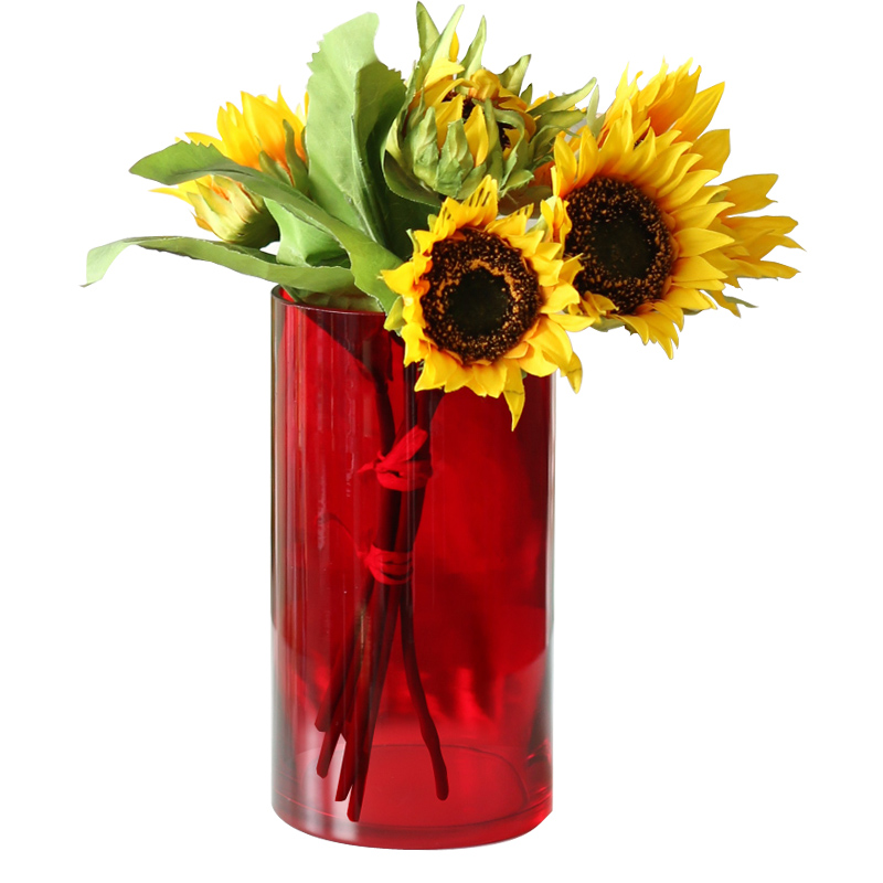 大红色落地玻璃直筒花瓶简约轻奢水培婚庆客厅玄关电视柜装饰摆件