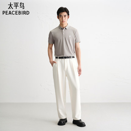 太平鸟男装 polo衫夏季桑蚕丝刺绣翻领短袖t恤