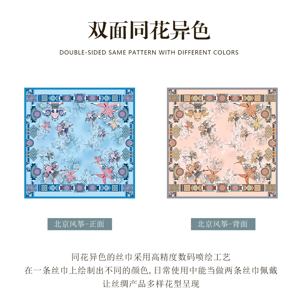瑞蚨祥-北京风筝-100%桑蚕丝双面印花真丝丝巾新款方巾送礼礼盒