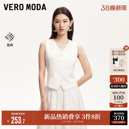 Vero Moda奥莱马甲女2025夏季新款商场同款假口袋含亚麻V领上衣