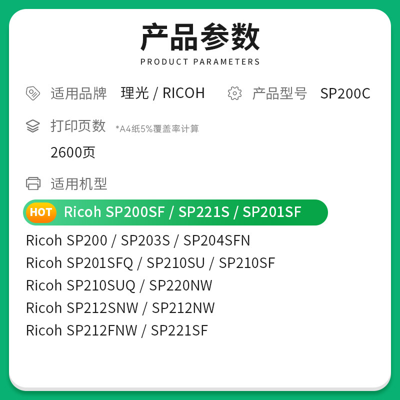 才进适用理光sp200硒鼓sp200s sp210su sp212nw sp212snw sp201sf sp221s sp212nw 211 201 sp200c打印机粉盒