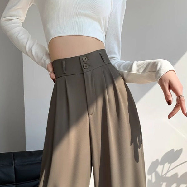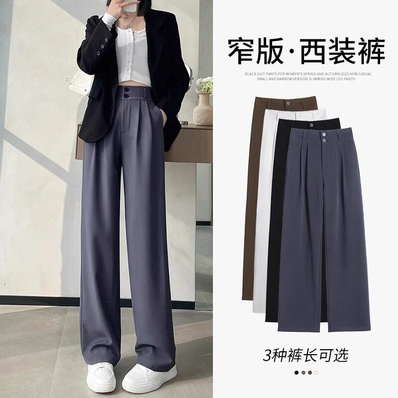 清仓捡漏黑色窄版西装裤女春夏新款高腰垂感冰丝凉凉直筒阔腿裤子