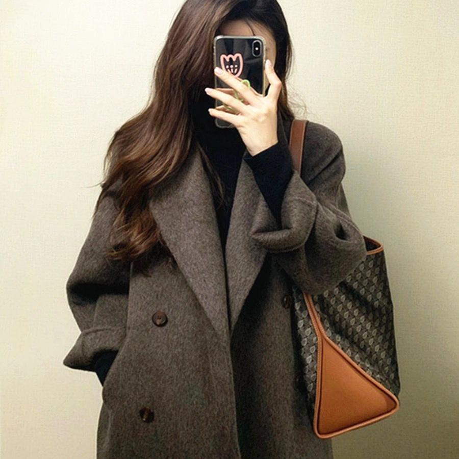 高端双面羊绒大衣女2025年冬新款过膝宽松显瘦廓形中长款毛呢外套