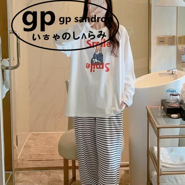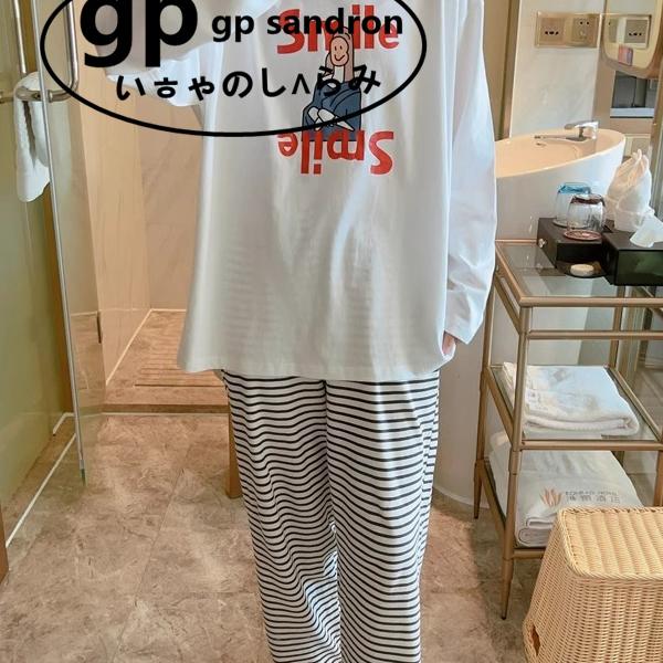 日本小众gp宽松睡衣女士春秋季长袖纯棉休闲甜美家居服条纹睡裤装