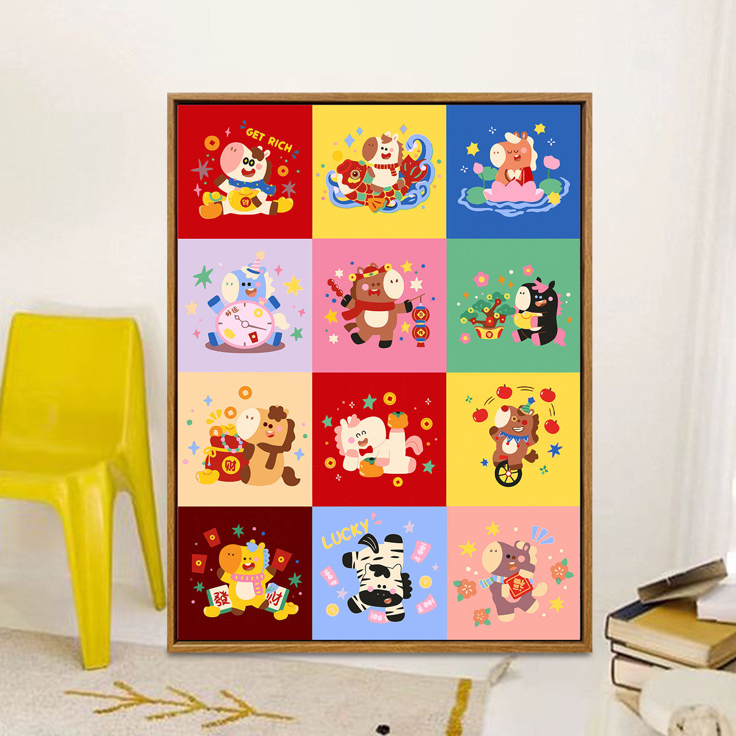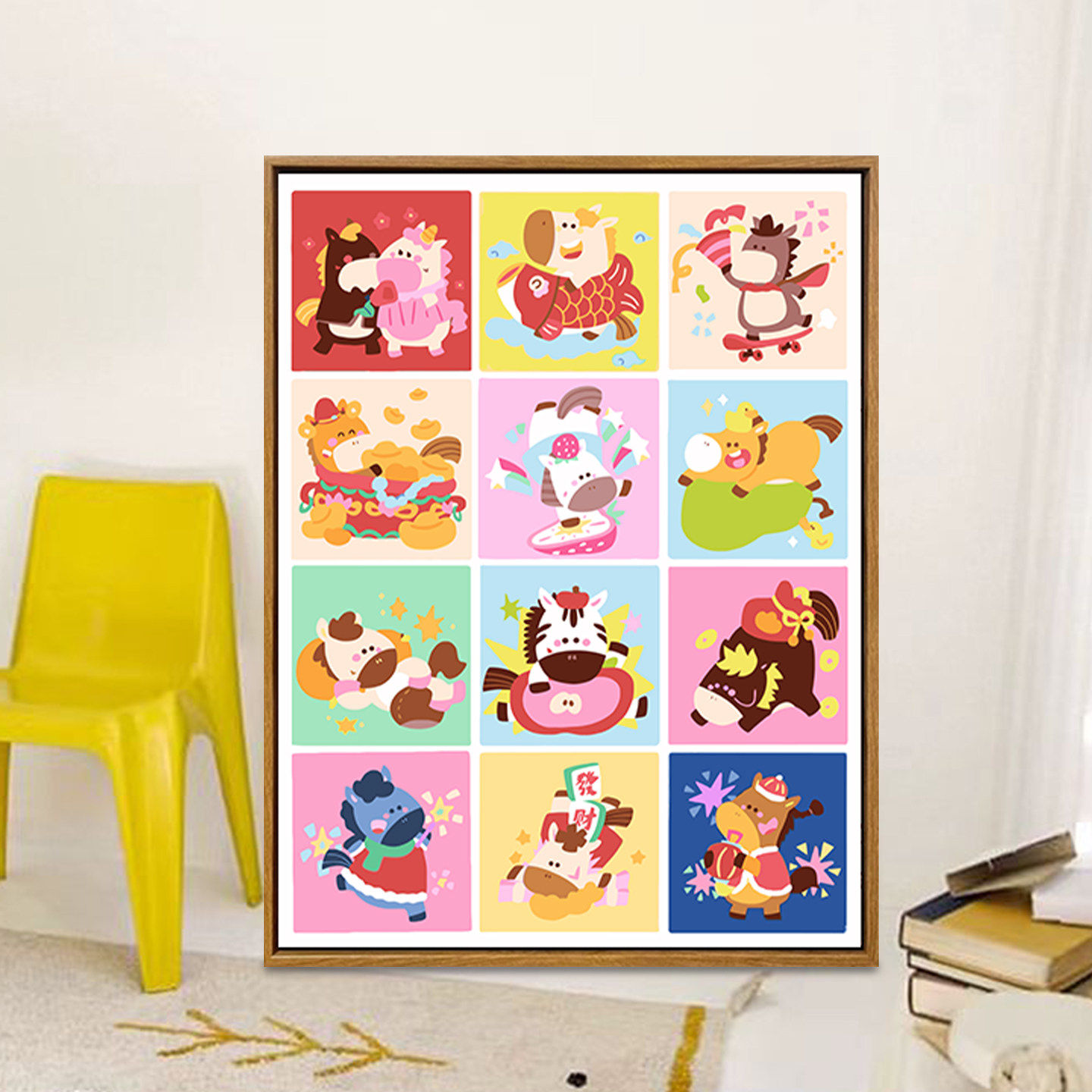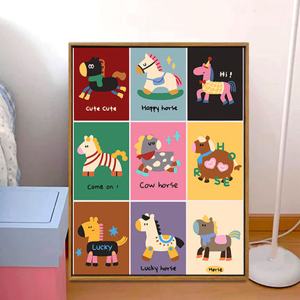 多巴胺小马数字油画diy填涂色手工绘马年卡通儿童卧室油彩装饰画