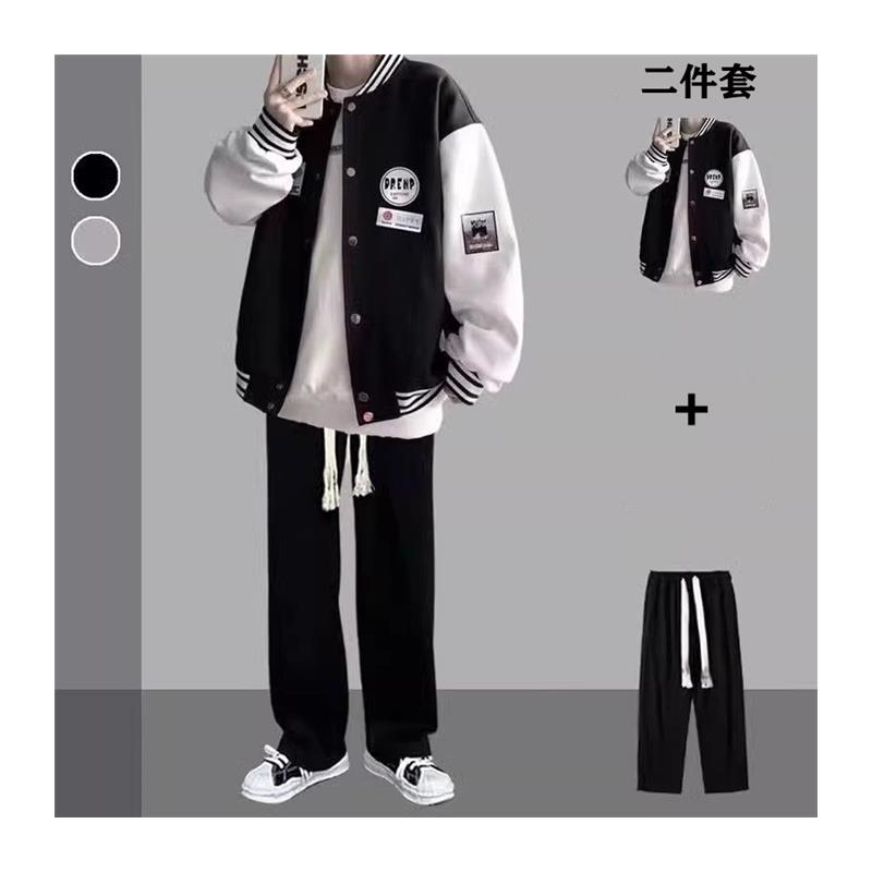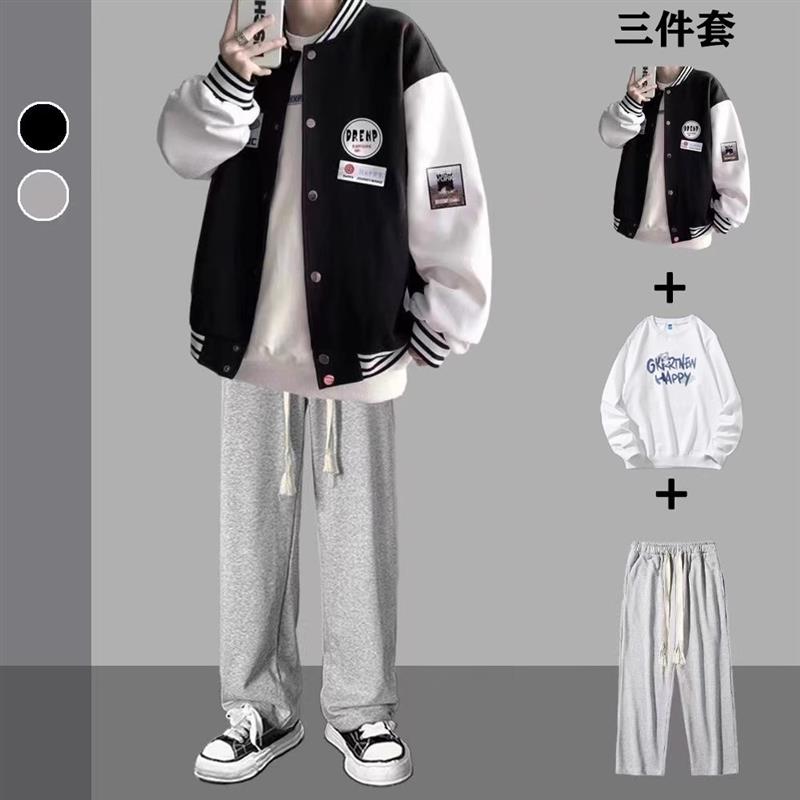 棒球服夹克套装男潮牌加绒加厚休闲外套高中生夹克酷帅穿搭青少年