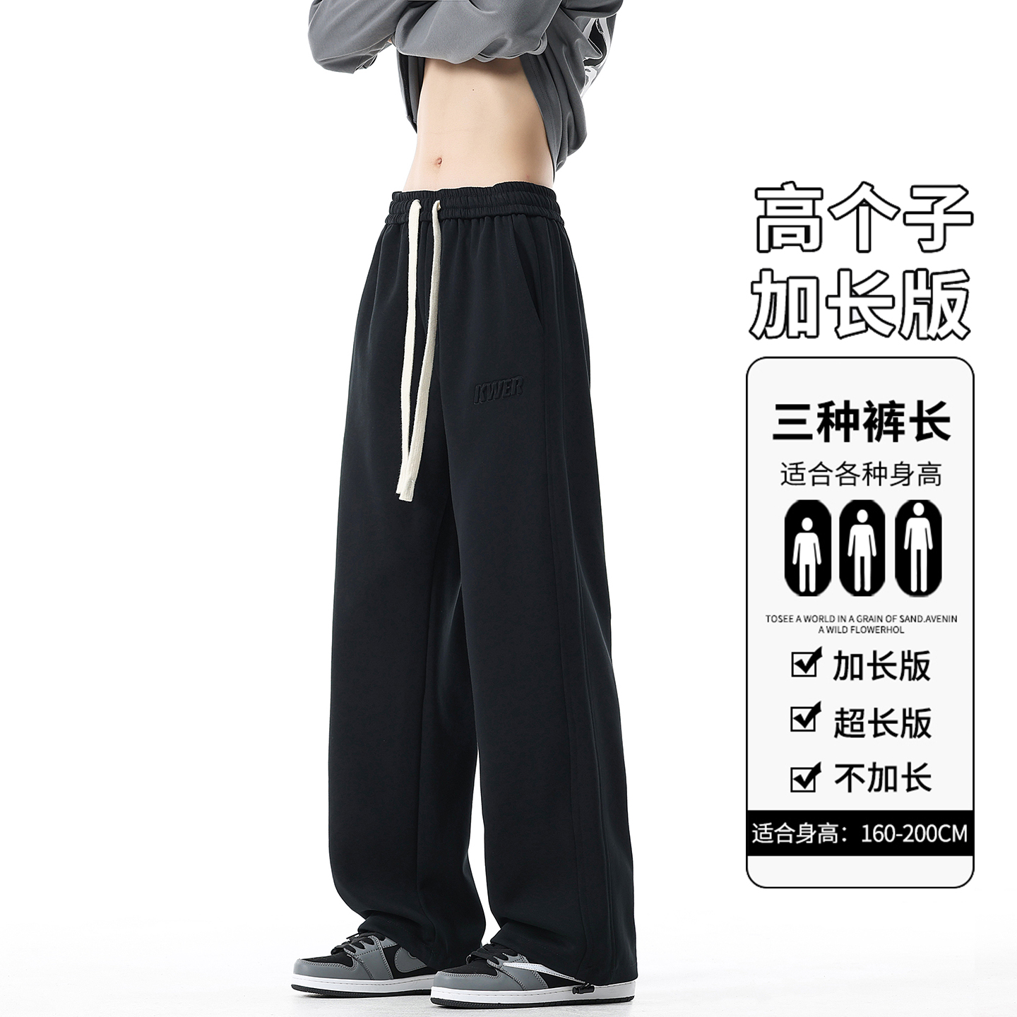 春秋款宽松阔腿卫裤男高个子加长裤子男190男生青少年115cm运动裤