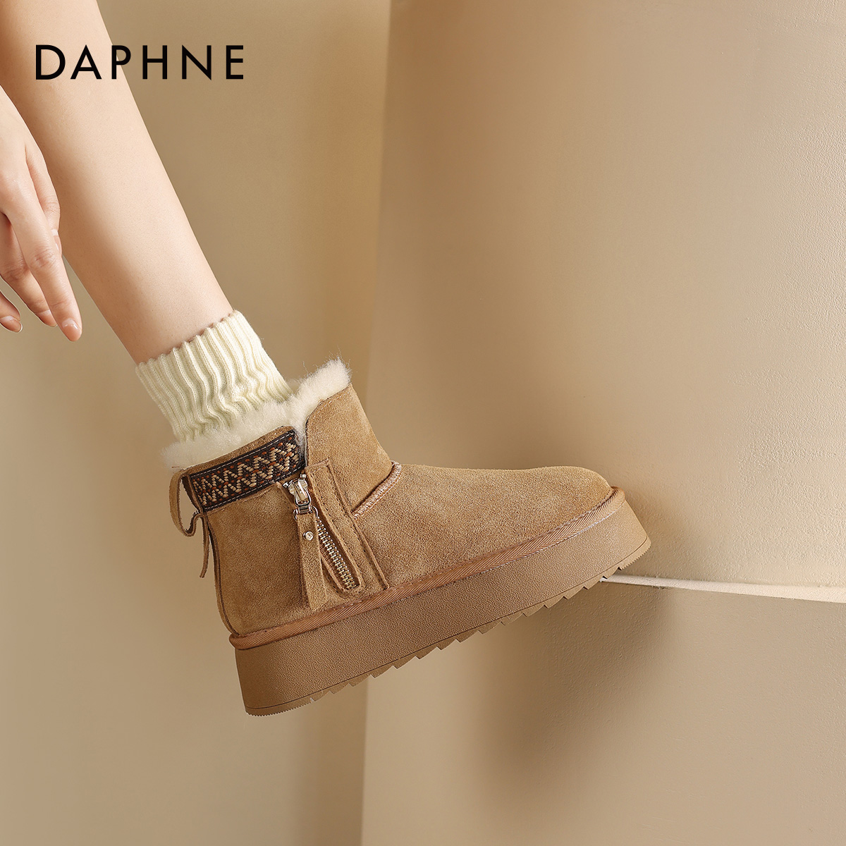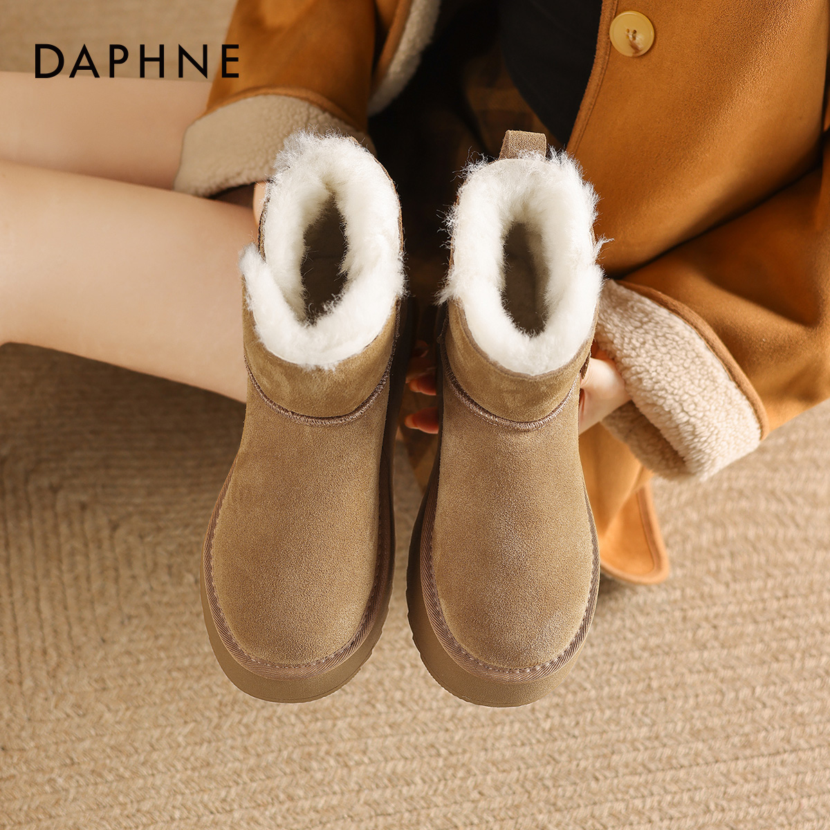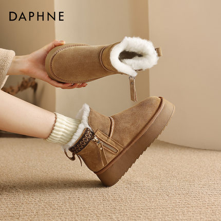 达芙妮厚底雪地靴女款2025新款冬季棉鞋加绒加厚毛毛鞋面包短靴子