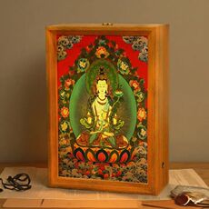 唐卡摆台藏族财神灯光画桌面供俸相框保佑招财氛围灯家庭和睦成品
