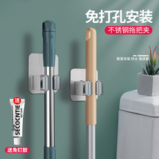 拖把挂钩免打孔强力壁挂不锈钢家用置物架卫生间收纳神器扫把卡扣