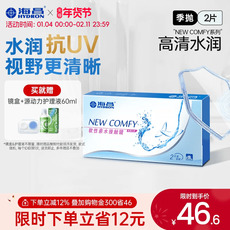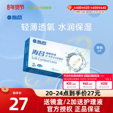 海昌隐形眼镜季抛2片装隐性近视高清透明眼镜学生官方旗舰店正品