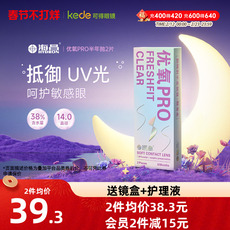 海俪恩隐形近视眼镜润氧年抛2片盒透明高清抗UV旗舰店正品非美瞳