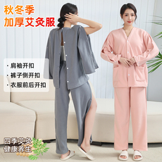 秋冬肩袖开扣加绒加厚艾灸服纯棉前后开衫刮痧针灸拔罐理疗服按摩