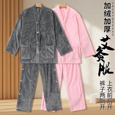 秋冬加厚加绒袖子开扣艾灸服纯棉前后开衫长款理疗服针灸按摩拔罐
