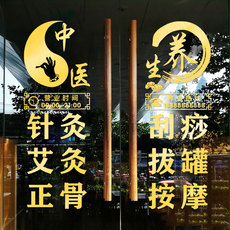 中医养生馆理疗店铺玻璃门贴纸针灸艾灸刮痧拔罐广告文字装饰贴画
