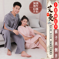 艾灸服前后开系扣合衣男全棉针灸理疗服女情侣按摩足疗服大码拔罐