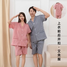 艾灸服纯棉前后开衫开扣针灸服拔罐服熏蒸服开背全棉专用理疗服装