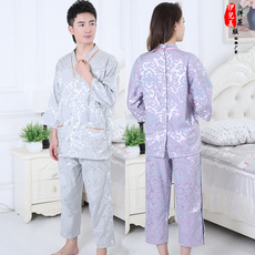 艾灸服前后开系扣纯棉男女长袖长裤按摩服背开刮痧拔罐针灸理疗服