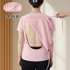 带胸垫晒背衣专用短袖女棉质后背镂空上衣拔罐针灸养生T恤
