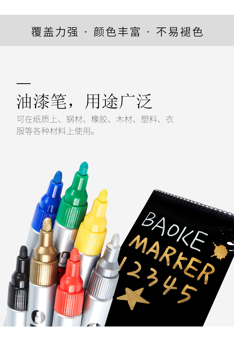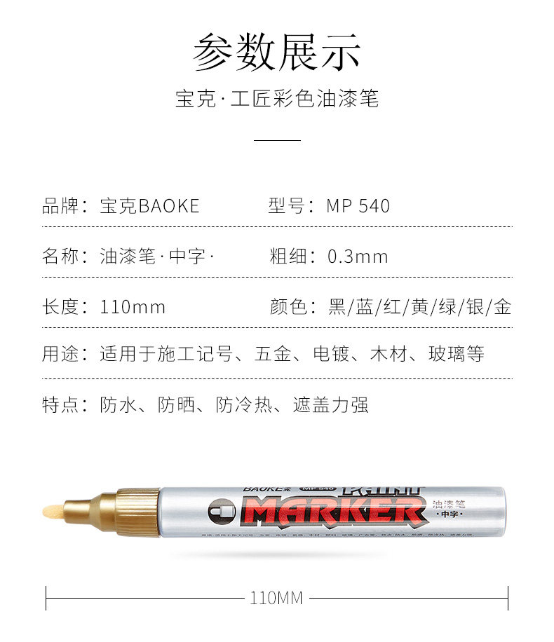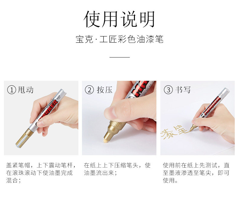 宝克油漆笔白色记号笔轮胎补漆笔油性笔石碑金色红色涂鸦笔60包邮