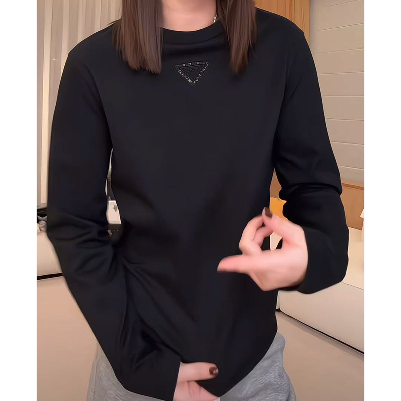 欧洲站气质三角标长袖T恤女春秋显瘦百搭打底衫韩系减龄上衣体恤
