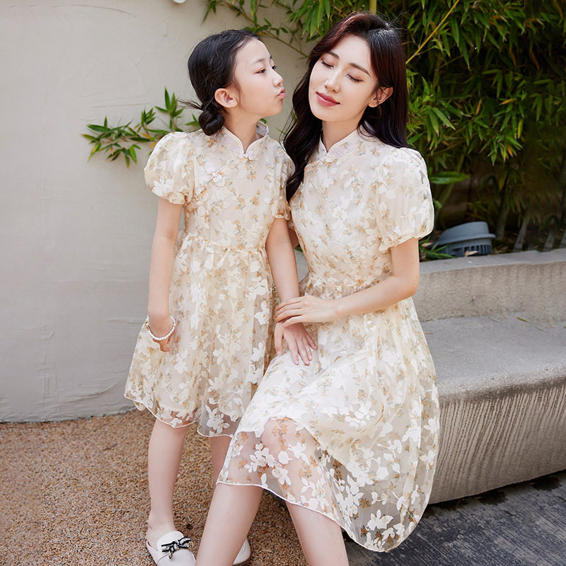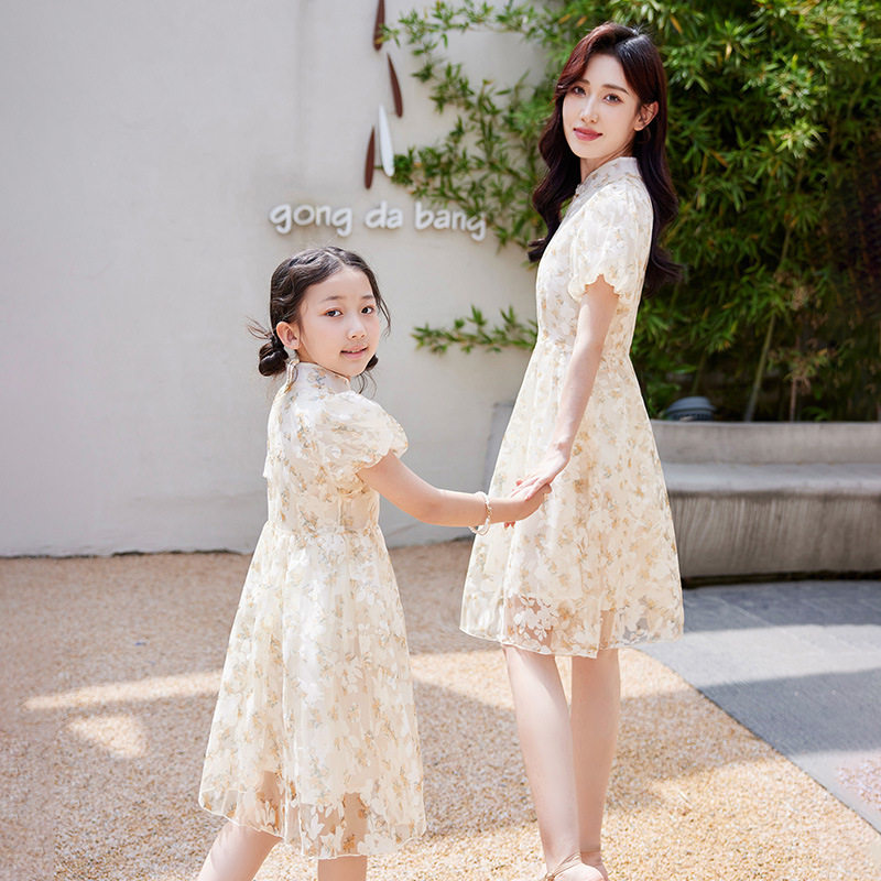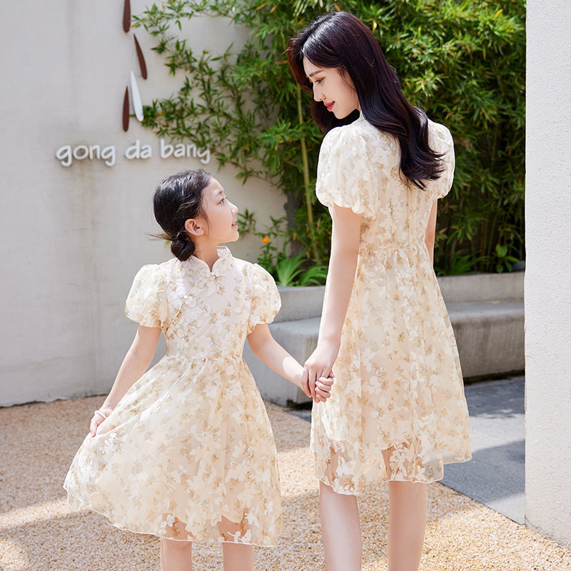 母女炸街高端亲子装夏装新潮公主连衣裙改良复古旗袍裙子