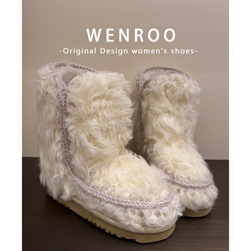 欧货真羊毛保暖加绒厚底雪地靴女