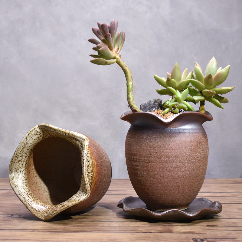 创意老桩紫砂多肉花盆透气陶罐手拉粗陶多肉植物陶瓷绿萝花盆大号