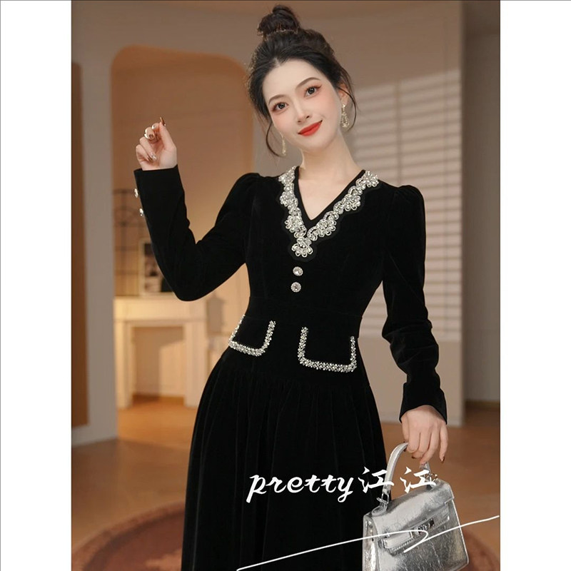 法式高定御姐感V领礼服连衣裙女重要场合高端精致千金风黑色长裙