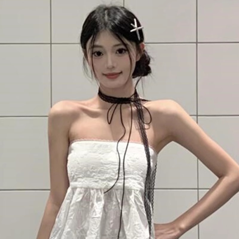 zoozmini叠戴层次感设计蕾丝飘带细窄女春夏百搭锁骨颈带丝巾项链