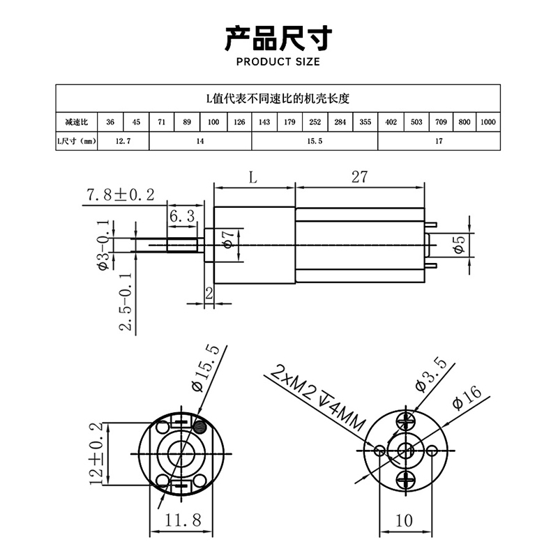 16GA-050减速电机微型马达减速箱
