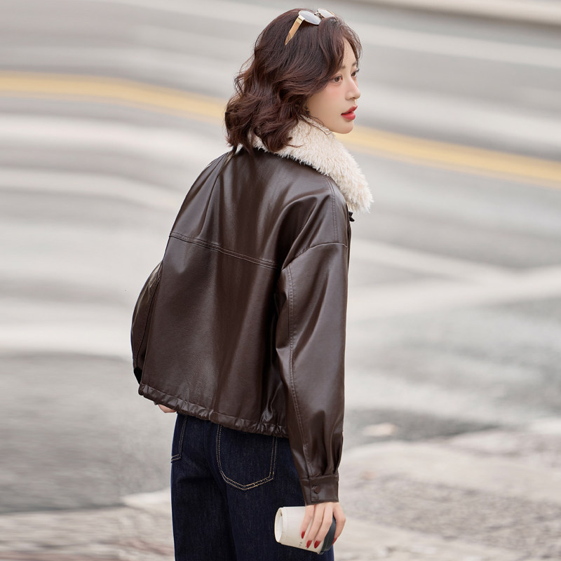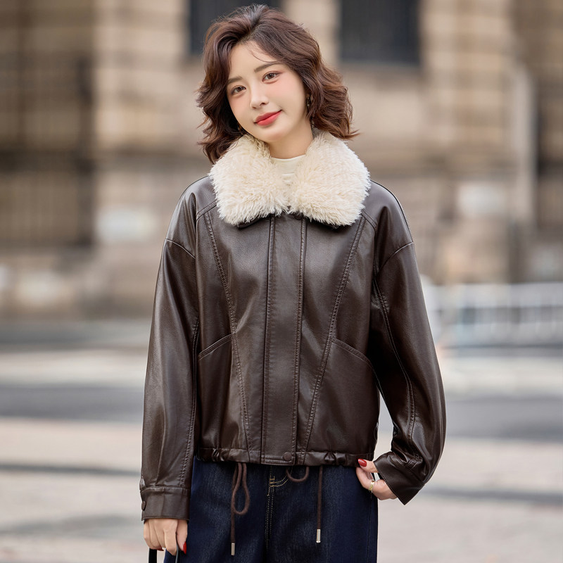 海宁真皮皮衣女短款加绒加厚外套