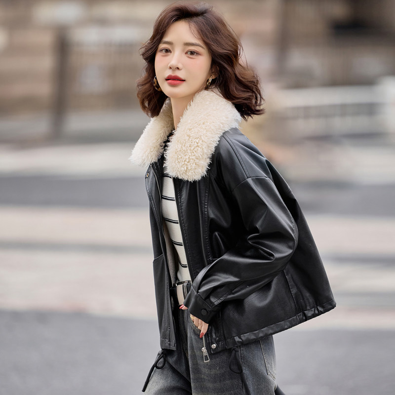 海宁真皮皮衣女短款加绒加厚2025秋冬新款绵羊皮外套韩版宽松夹克