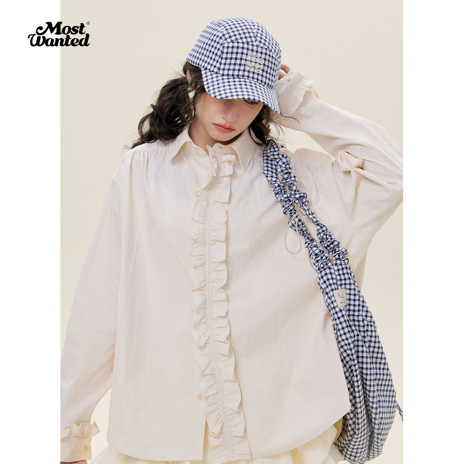 mostwanted 小花棉麻木耳花边长袖2025夏季新款衬衫女