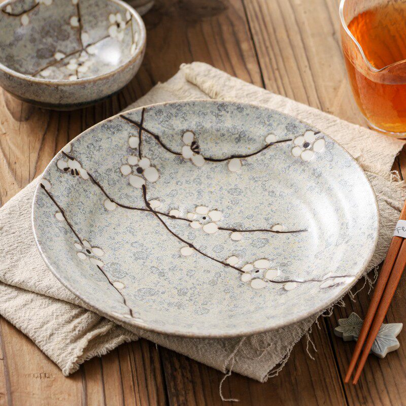 爱悦居日本朦胧早春陶瓷日式餐具家用碗碟深盘菜盘子家用平盘方盘