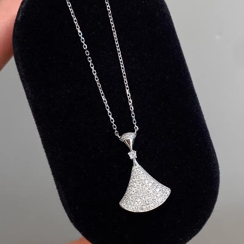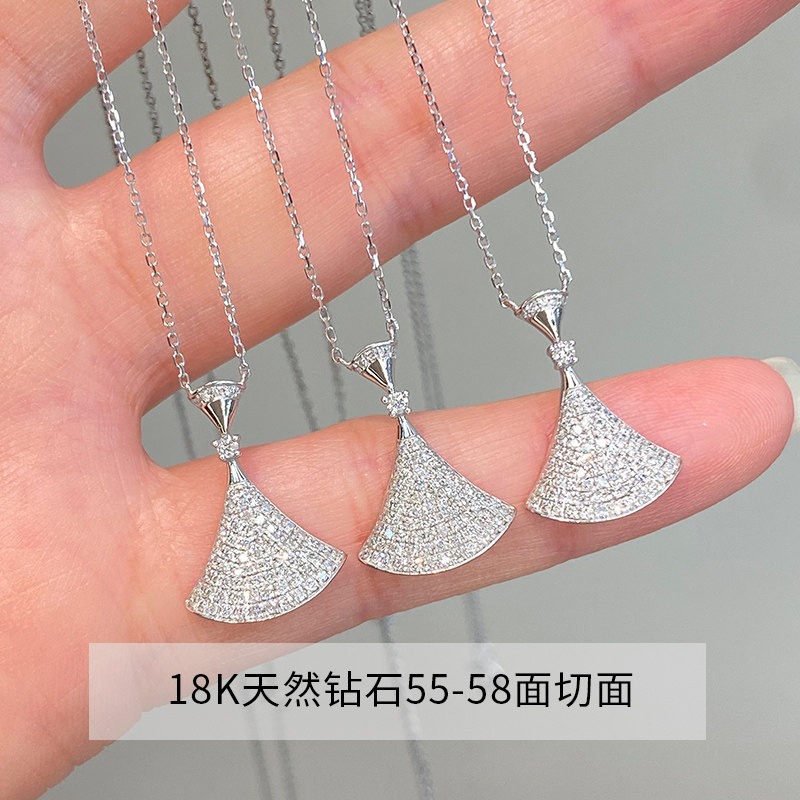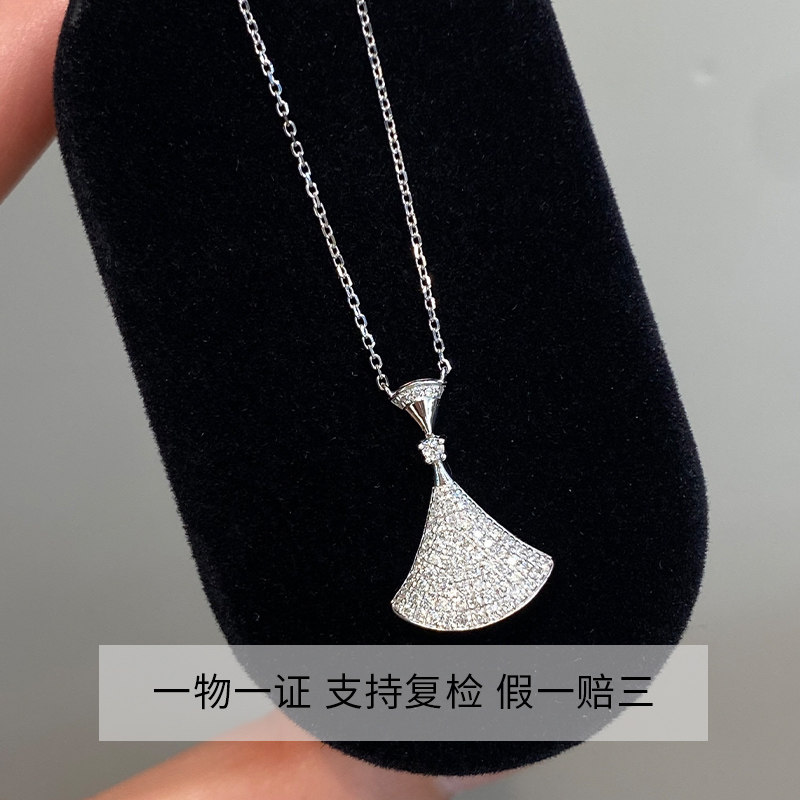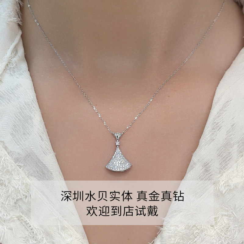 PT950铂金天然钻石女真钻满钻裙子款项链扇子吊坠定制情人节礼物