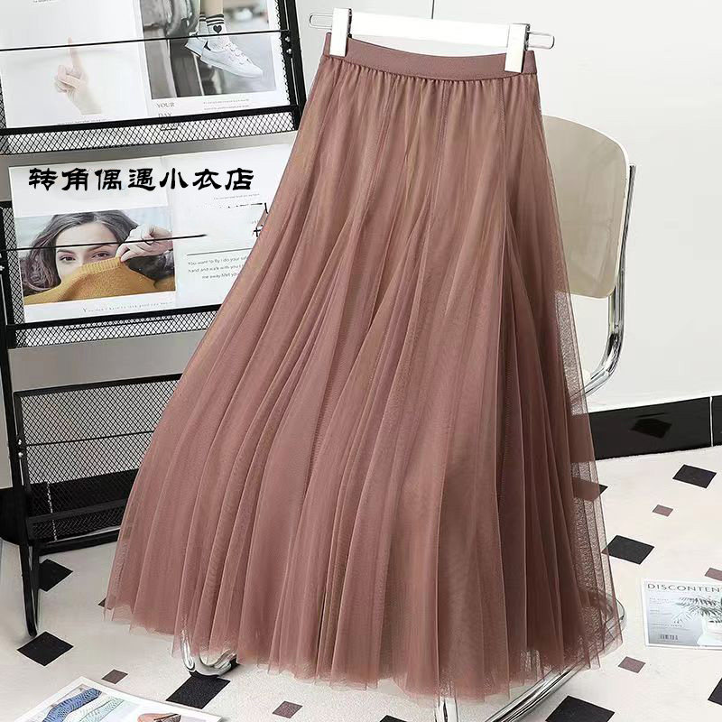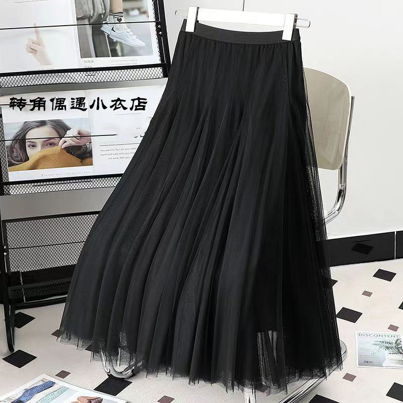 大摆网纱半身裙女高腰显瘦飘逸中长款a字裙百褶纱裙子舞蹈裙