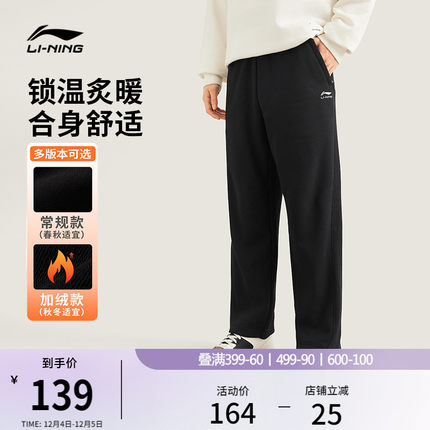 李宁热力裤丨卫裤新款男秋冬季黑色裤子直筒休闲裤加绒针织运动裤