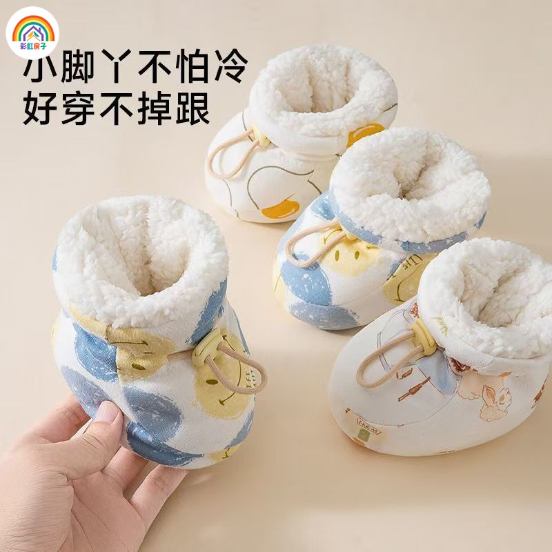 彩虹房子秋冬婴儿鞋冬季加绒0-1岁宝宝软底学步鞋防掉棉鞋保暖
