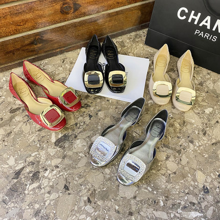 平底鞋2025新款夏季rv方扣单鞋圆头中空chips镂空芭蕾舞凉鞋女