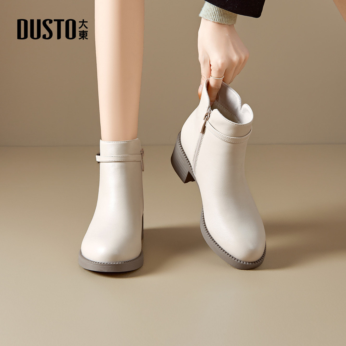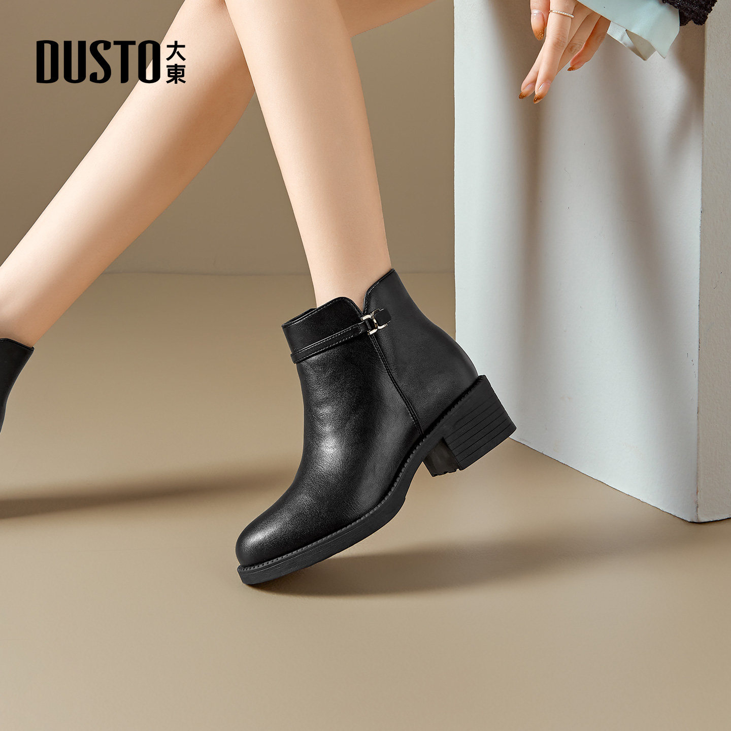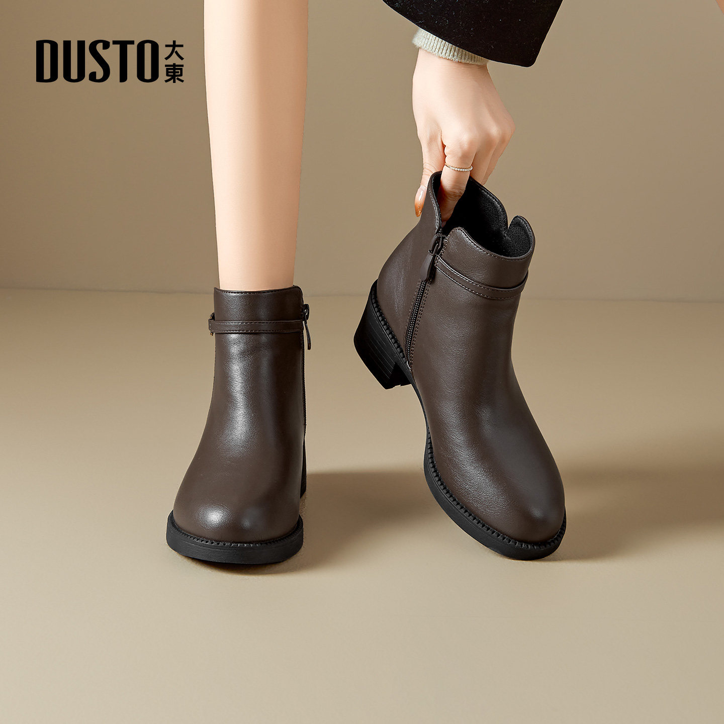 大东dd短靴女冬季2025新款粗跟女靴妈妈皮鞋高跟鞋厚底加绒马丁靴