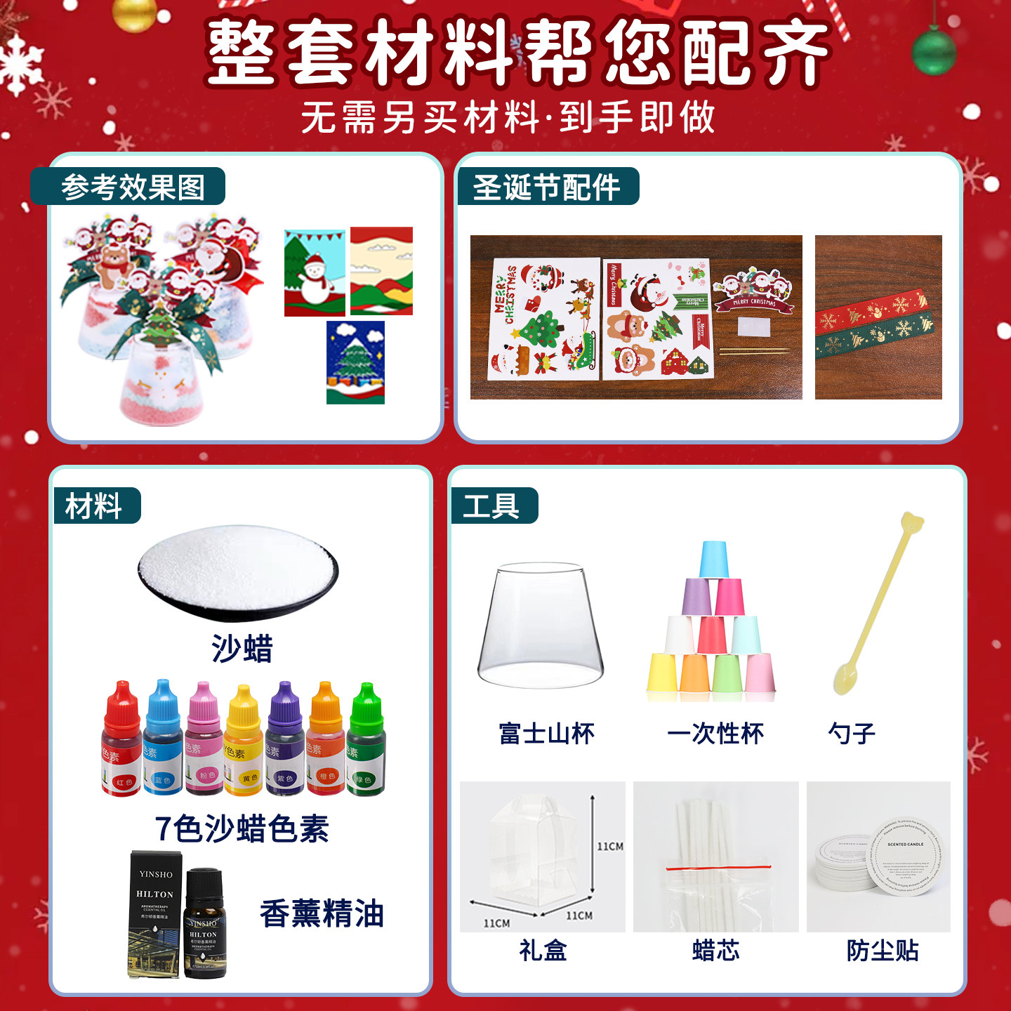 圣诞节手工沙画彩砂香薰蜡烛diy材料包儿童自制杯蜡摆件伴手礼