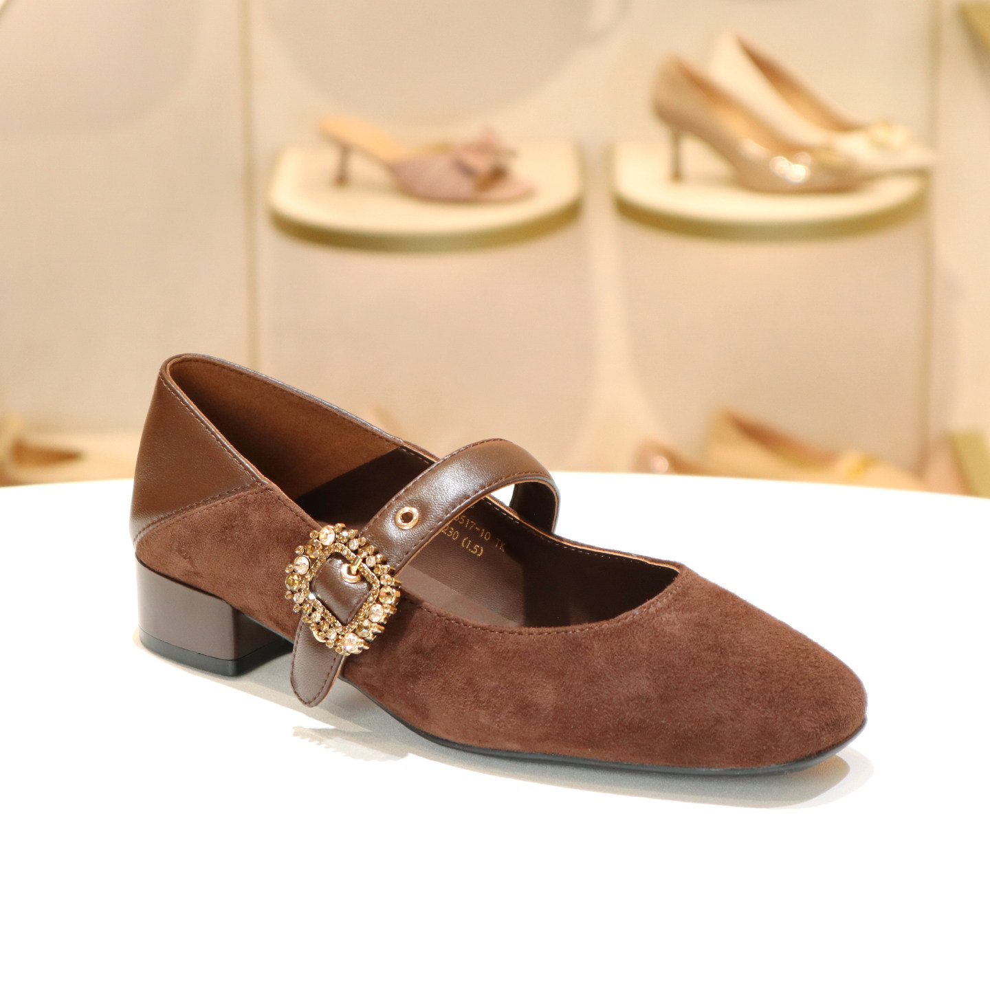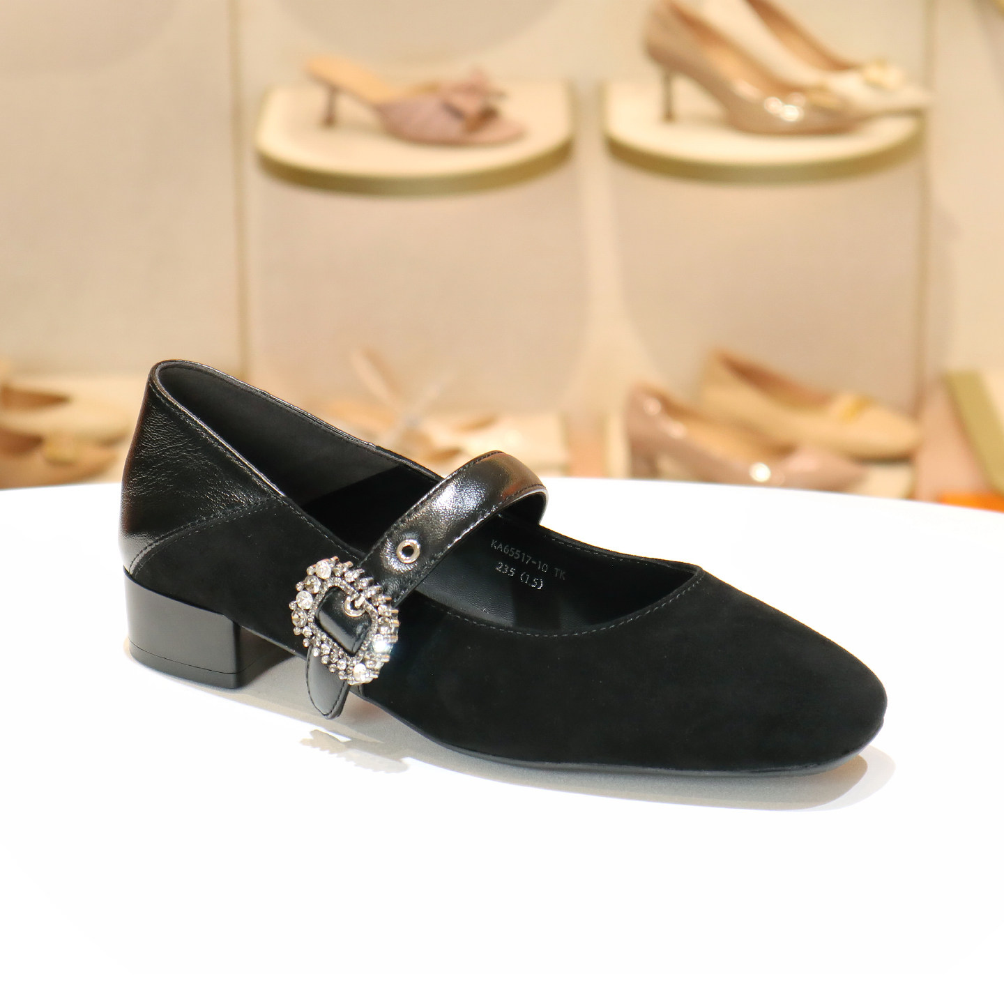 接吻猫女鞋羊反绒面水钻玛丽珍鞋